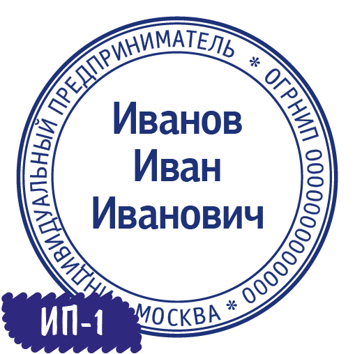 У нас Вы можете заказать Простую печать Индивидуального предпринимателя ИП-01. Необходимые данные для ИП: ОГРНИП, ФИО, ИНН.