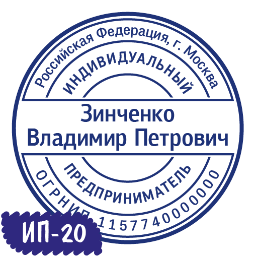 У нас Вы можете заказать Простую печать Индивидуального предпринимателя ИП-20.